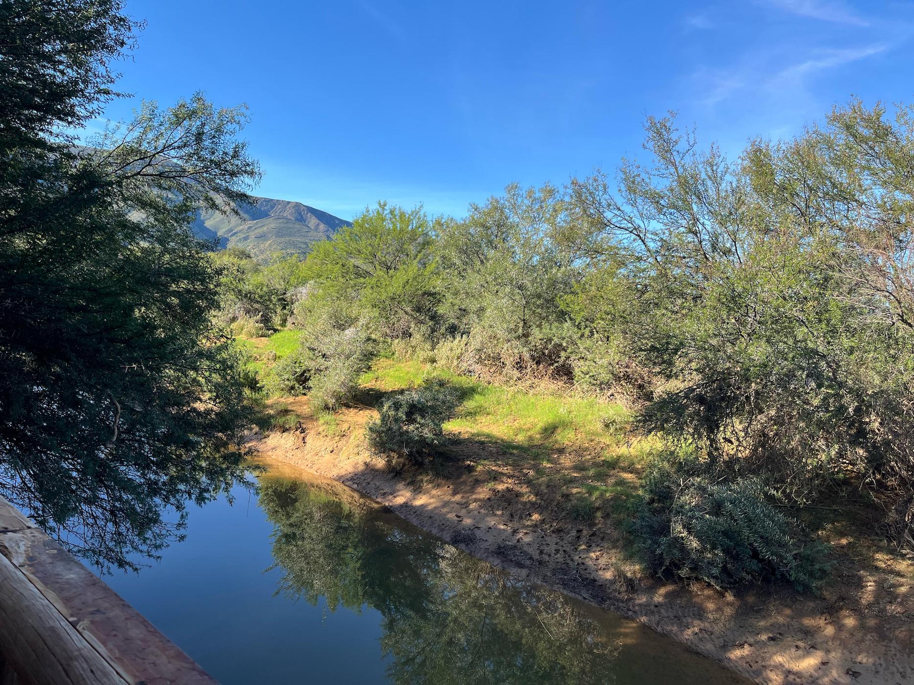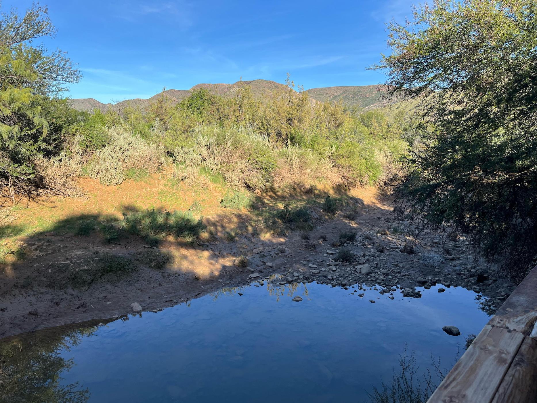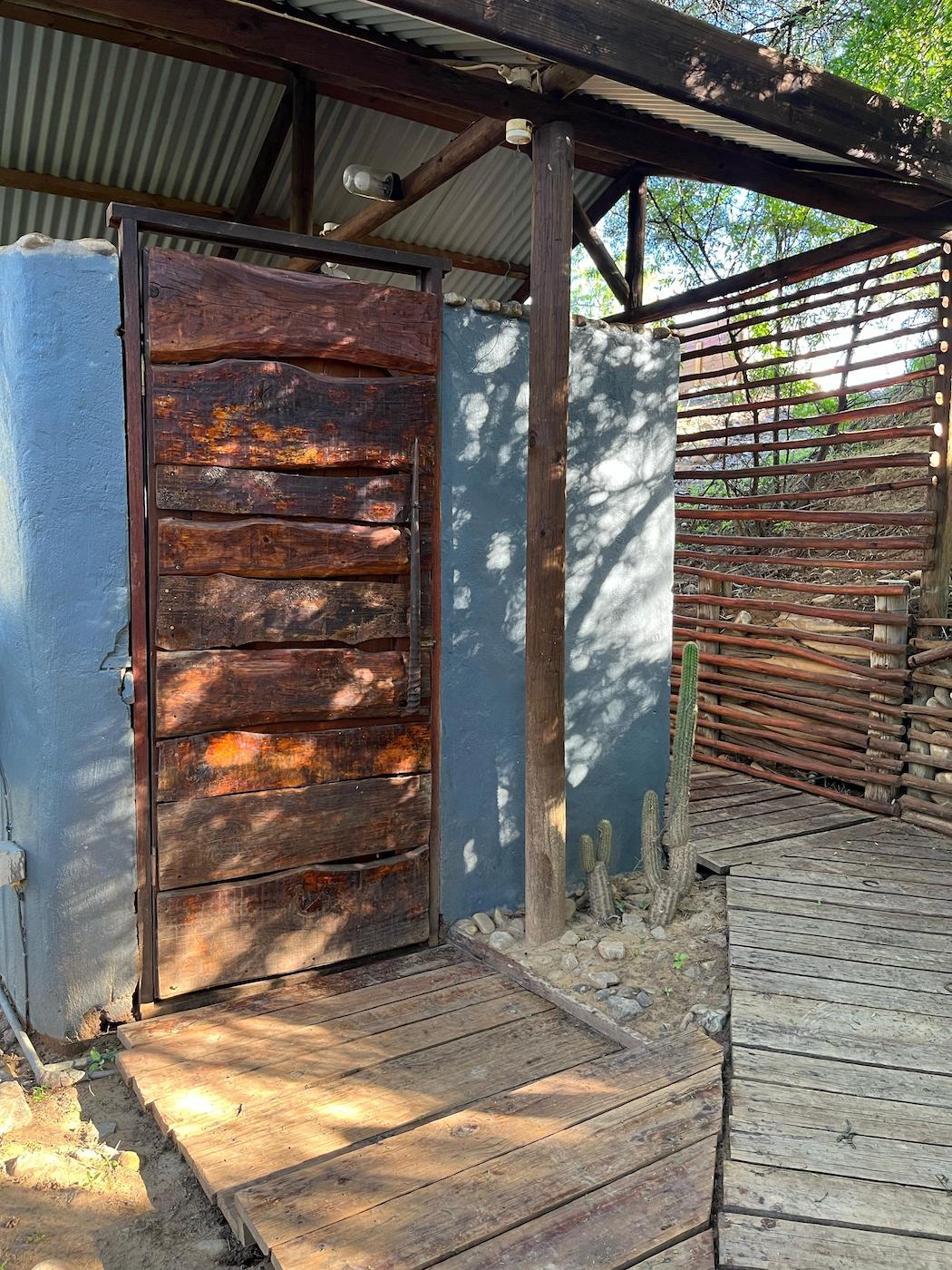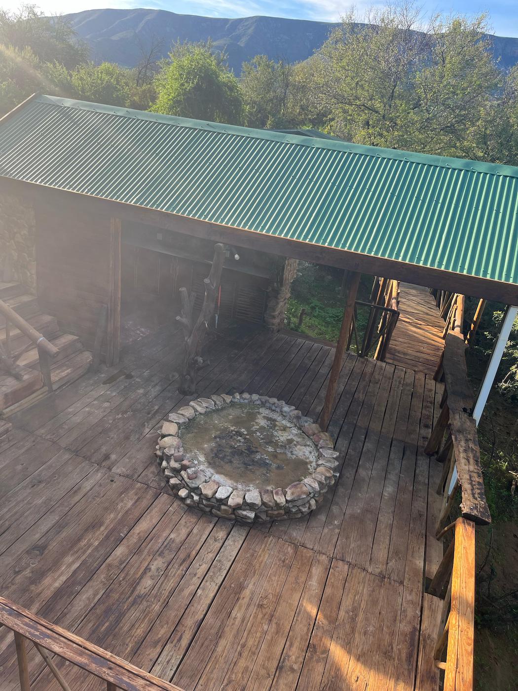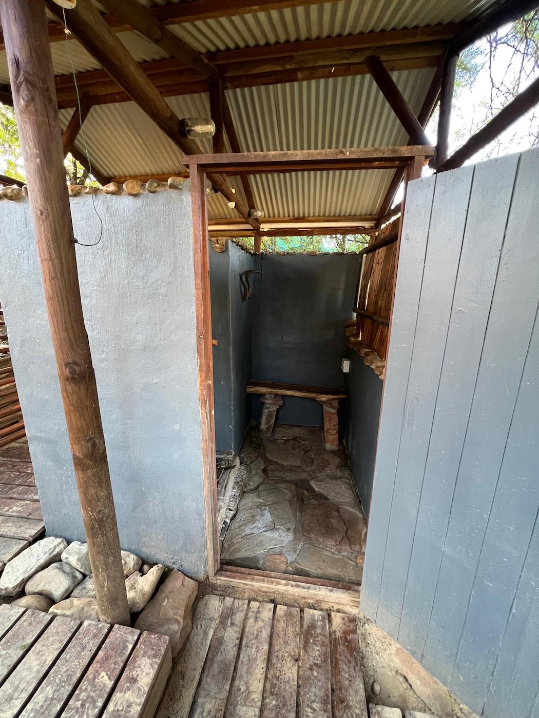 Built into the bank of the Groot River, you have to descend a few steps to get to the wooden walkways that interconnect the tents and bathrooms of this camp, while providing a lovely view across the river and down the Groot River valley.