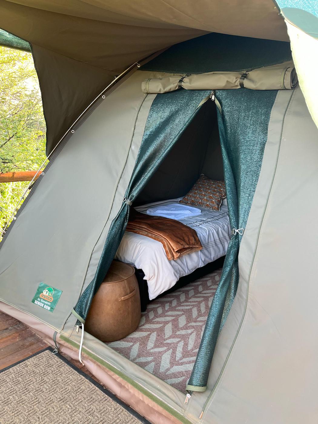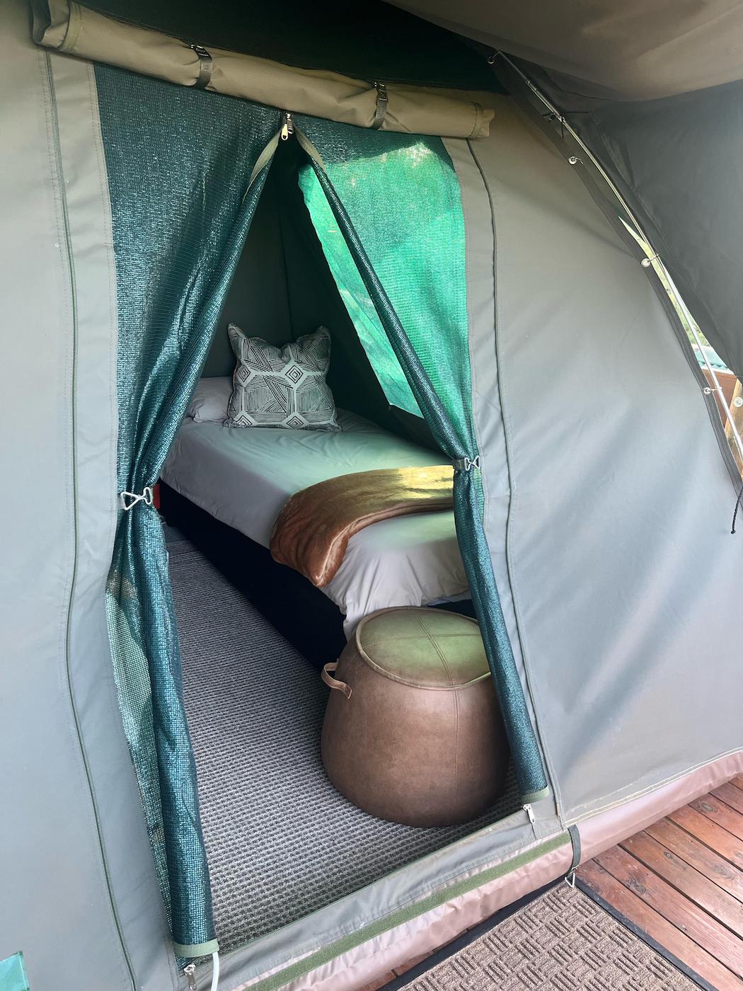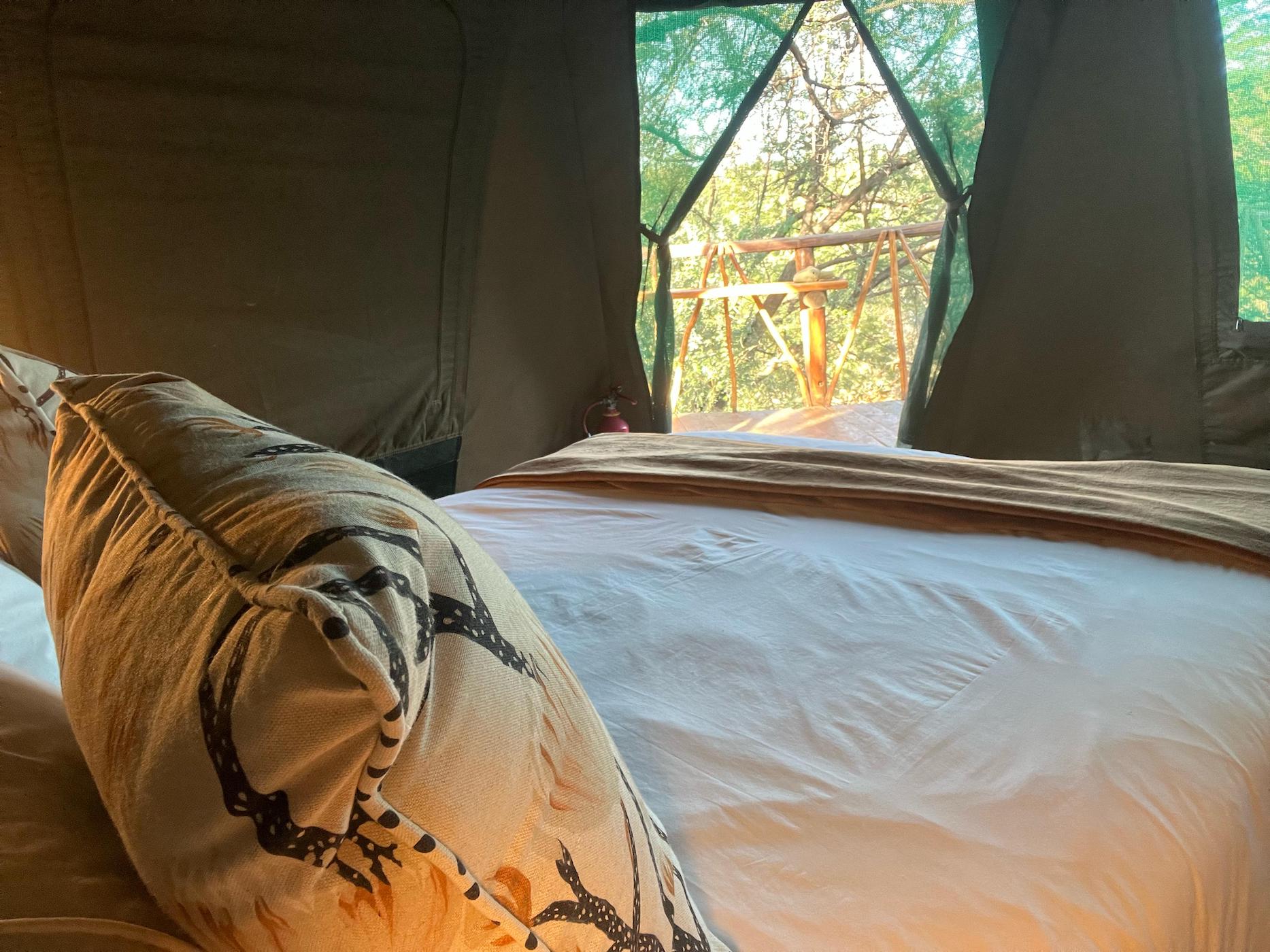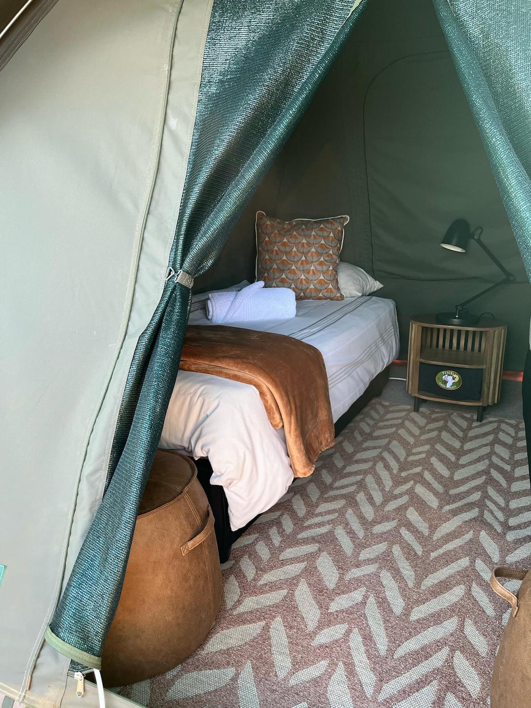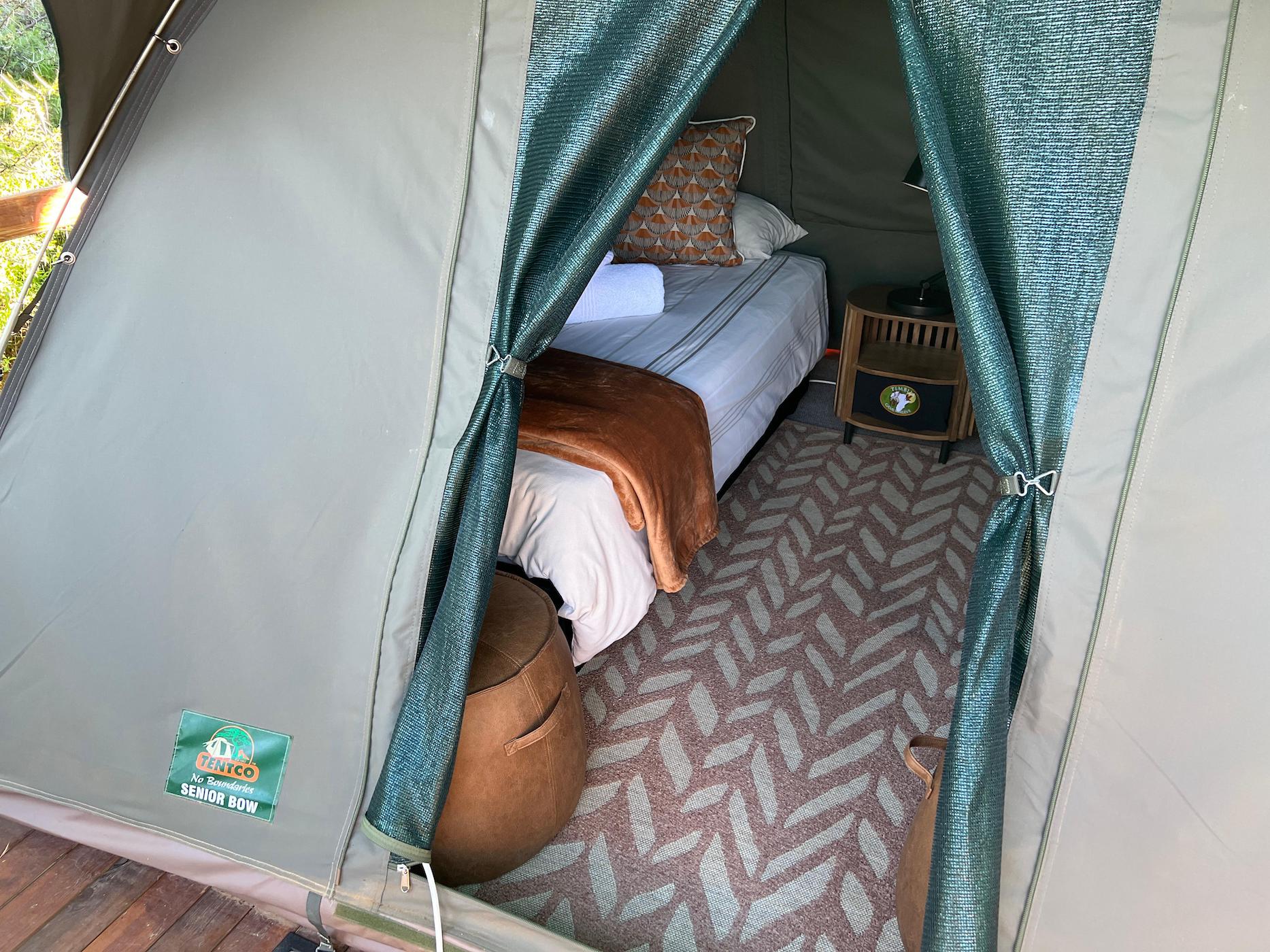 Bedding and towels are provided and all the beds have electric blankets for colder nights and each tent has a small fan for warmer nights and the bed side lamps provide sufficient light.
