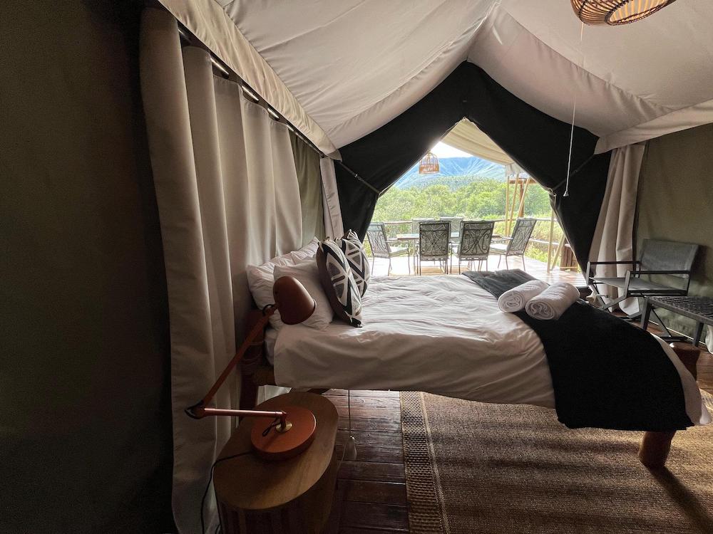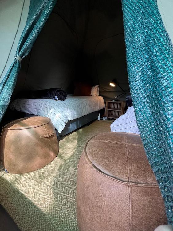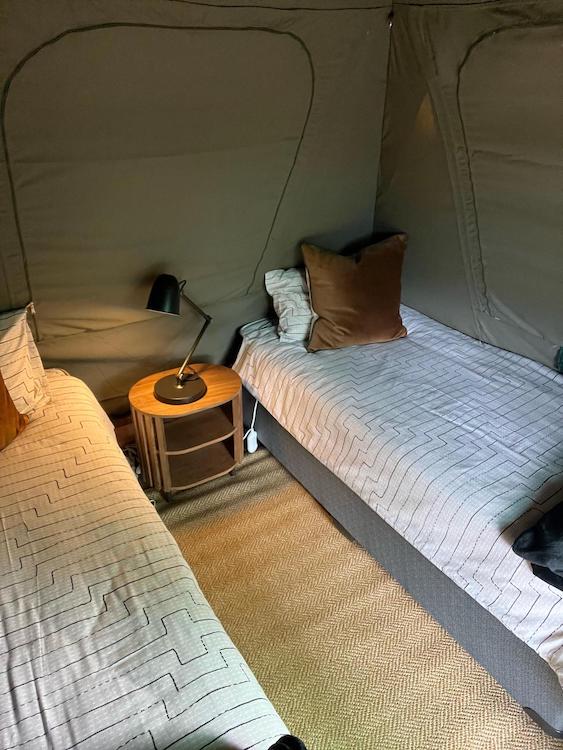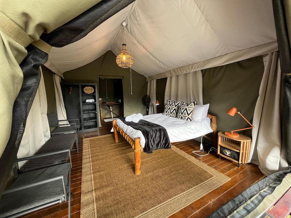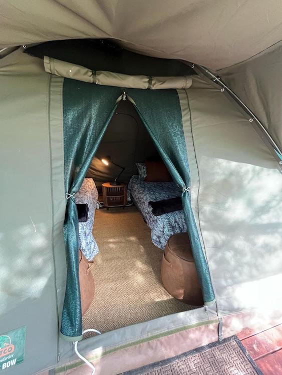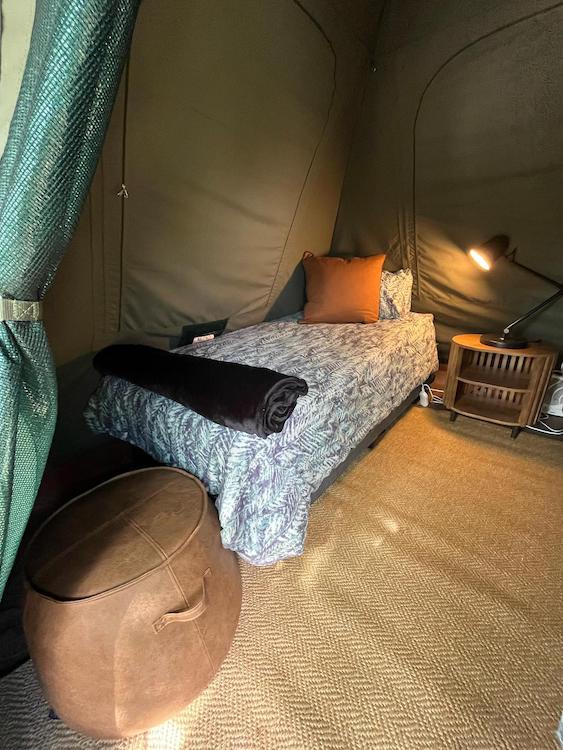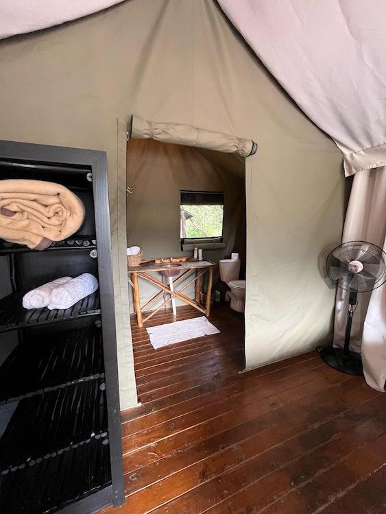 Bedding and towels are provided and all the beds have electric blankets for colder nights and each tent has a small fan for warmer nights. Bed side lamps provide sufficient light and all tents are carpeted.